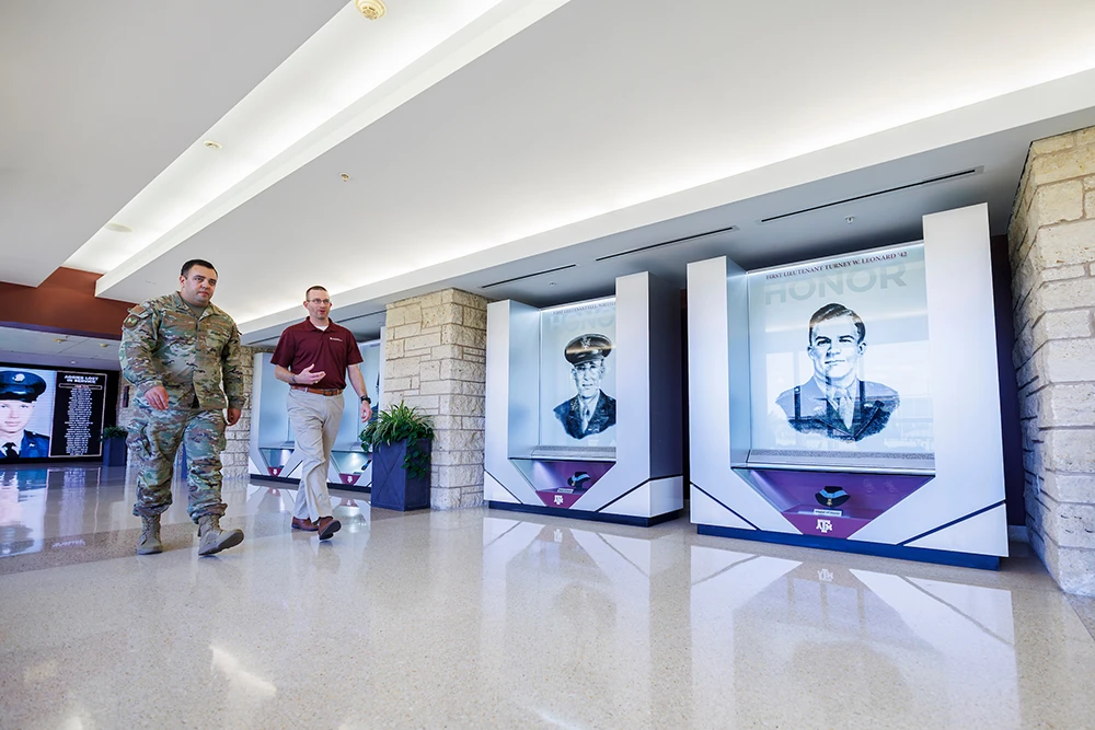 “It’s part of our DNA at Texas A&M to support our veterans and our military. I get to share 31 years of military experience every day with future military and civilian leaders. It means a chance to give back and shape the next generation of servant leaders that will guide our great nation into the future,” said Scott Jackson ’92, who is retired from the U.S. Coast Guard and serves as the strategic support and engagement director for the Texas A&M Corps of Cadets.
